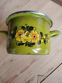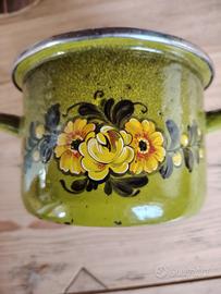 Pentolino smaltato con decorazioni floreali vintag