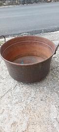 Pentolona in rame con due manici ben conservata senza ammaccature diametro cm 64 altezza cm 40