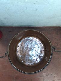 pentolone (paiolo) in rame con gancio per appenderlo, in rame senza buchi , altezza 23.5 larghezza 46, scambio a mano zona Poirino (To) oppure Torino corso Giulio angolo corso Novara per info in pvt