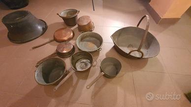vendo pentole, padelle, pentoloni e casseruole in rame. Oggetto d'epoca ideali per vasi, fioriere o arredo vintage