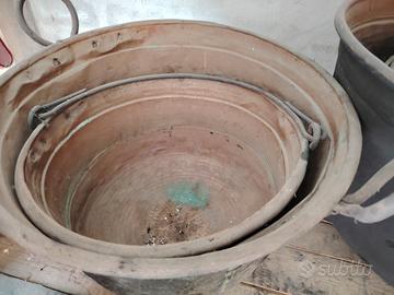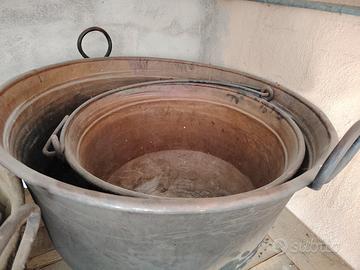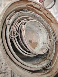 Pentoloni varie misure in rame in uso circa 50 anni fa.Si vendono al miglior offerente.