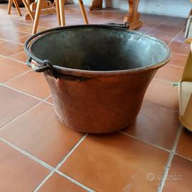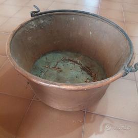Set di 3 pentoloni in rame antico. Misure diametro: 60 cm, 55 cm e 45 cm. Vendibili anche separatamente