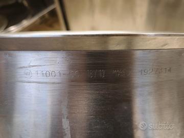 Vendo 2 pentoloni professionali in acciaio inox 18/10, ideali per ristorazione, catering, mense o lavorazioni alimentari. •Materiale: acciaio inox 18/10 (marchiato) •Produzione: Made in Italy •Struttura molto robusta •Dotati di maniglie laterali resistenti Capacità: Capacità: •Pentola grande: 100 litri → €500 •Pentola media: 60 litri → €250 Condizioni: Usati ma in buono stato generale, con normali segni di utilizzo (graffi e aloni). Perfettamente funzionanti. Vendita: Disponibili sia singolarmente che in blocco. Consegna: Ritiro a mano. Spedizione disponibile con aggiunta di €10.