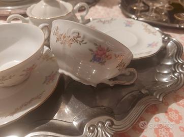elegante servizio the porcellana Bavaria Winterling Marktleuthen con decorazioni floreali e rifiniture dorate 5 piattini 5 tazze the 1 zuccheriera (consegna solo a mano)