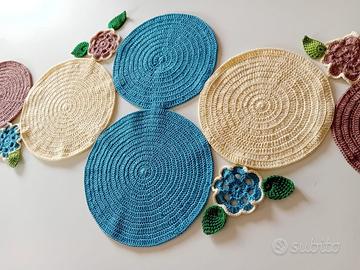 Centri tavola. Vaso di fiori misti completamente all'uncinetto.