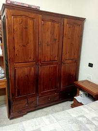 Armadio 3 ante 3 cassetti letto matrimoniale completo di reti e materassi comodini 2 con 1 cassetto e 1 vano in legno massello