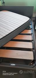 Vendo letto con doghe in legno e materasso nuovo, tutto da una piazza e mezza con comodino . (Con possibilità di aggiunta mobile a 7 cassetti della stessa camera, prezzo da concordare a parte ). Trasporto a carico dell' acquirente.