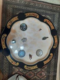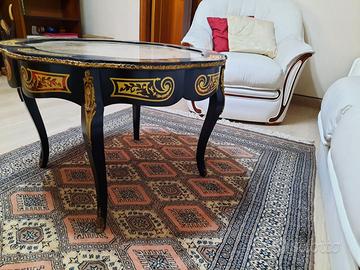 Per gli amanti dei mobili in stile, vendo per cambio arredamento a un prezzo decisamente invitante, una raffinata vetrinetta e un tavolinetto di pari livello, entrambi in stile boulle in legno di abete verniciato nero con intarsi in ottone e interni finemente rivestiti in tessuto damascato. Entrambi sono in perfette condizioni e senza nessuna scalfitura, praticamente in condizioni da vetrina. Misure vetrinetta: h 205, L103, p 38; Misure tavolinetto: d / 74, h 48 Li cedo entrambi a 900,00 euro con trasporto a carico dell'acquirente. Se interessati, lasciate un messaggio qui e sarete contattati