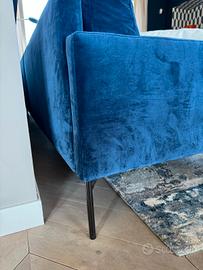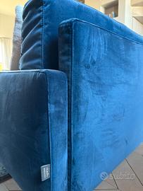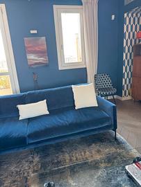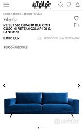 Vendo divano VIBIEFFE in ottime condizioni, acquistato nel 2023, come nuovo non animali domestici e non fumatori. Dimensioni L 255 x 320, A 60 bracciolo 83 schienale. Tessuto vellutato blu dal fascino minimalista - ampi cuscini con massimo comfort, poggia su piedini metallici a spillo rifiniti in nichel nero realizzato a mano alla VIBIEFFE. - Affare 3500 euro
