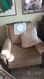 - Poltrona in velluto con braccioli in legno massiccio