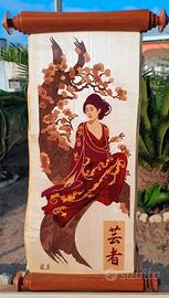 Scopri l’eleganza senza tempo di questa pergamena in legno intarsiata, un’opera d’arte unica realizzata interamente a mano. La tavola, scolpita in Acero Americano e incorniciata da rotoli in Iroko e Okumè, ospita un raffinato intarsio di Geisha composto da ben 8 essenze di legno massello: Padouk, Ciliegio, Noce Canaletto, Faggio, Cuore Viola, Osage Orange, Iroko e Okumè. Ogni dettaglio è curato con maestria: i rinforzi posteriori in Faggio e Acero incastonati trasversalmente garantiscono stabilità e durabilità, mentre la forma a pergamena e le sfumature naturali del legno donano un fascino orientale e poetico. 🎨 Personalizzabile: disegni, colori e forme su richiesta 🎁 Perfetta come regalo artistico, decorazione d’interni o opera da collezione Un pezzo che unisce tradizione, tecnica e bellezza, pronto a raccontare una storia nel tuo spazio. 📐 Dimensioni: circa 35x65x5 cm L'opera viene consegnata oltre ad una confezione robusta anche in una valegetta trasparente.