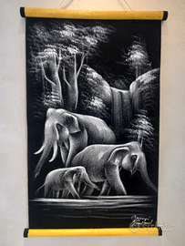 Quadro a pergamena su tessuto dipinto a mano originale Thailandia. Appeso esclusivamente per fare la foto.Astenersi perditempo grazie.