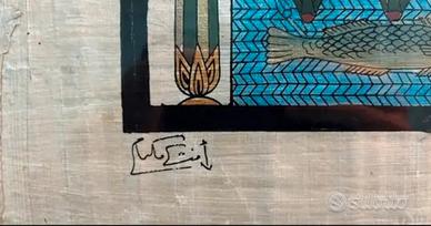 Pergamena egiziana - simbolo di fertilità Acquistata direttamente a Sharm el-Sheikh, Egitto, questa pergamena raffigura antichi simboli legati alla fertilità e alla prosperità. Perfetta come oggetto decorativo, da collezione o come regalo speciale. Realizzata con tecniche tradizionali, ogni pezzo trasmette l'autenticita e il fascino della cultura egiziana. Insieme alla pergamena vendo la cornice con doppio vetro che la custodisce. $ Pagamento in contanti al ritiro • Solo ritiro a domicilio X No perditempo Contattami in chat per foto dettagliate o ulteriori informazioni. Dati Principali