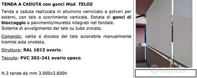 nr. 3 Tende laterali a caduta manuale. Telaio: RAL 1013.
