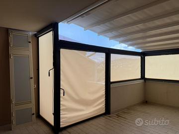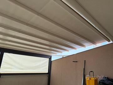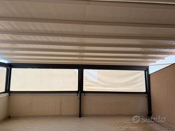 Come da titolo, vendesi pergotenda 6x4 m, pochissimi anni di vita, tenda color beige motorizzata con telecomando, completa come in foto e tutta perfettamente funzionante, compresi pilastrini e travi color antracite con tende oscuranti a manovella, quindi tutta apribile. Possibile apportare delle modifiche a carico dell'acquirente.