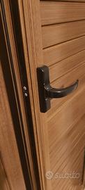 Persiana colore marrone effetto legno lucido,con 3 possibili aperture,smontata per cambio colore,è ancora in ottimo stato,misure 262,5x115,5 da utilizzare come porta d entrata oppure porta finestra