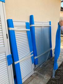 Sono due persiane a due ante, due ad anta e una porta finestra grigio chiaro.