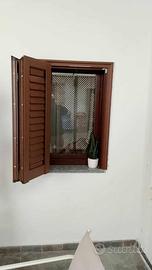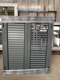 Ante con profilo perimetrale di sezione di 45/70. Battute da 20 mm. Sezione maggiorata (100 mm) del profilo inferiore, nel caso di battuta a tre lati. Lamelle classiche fisse 10/50 o lamelle squadrate “storiche” 10/77, trattenute da apposito profilo pretranciato in tinta, posizionato internamente ai montanti per le prime e da “selle” modulari per le seconde. Previsto traverso centrale per le finestre e doppio traverso nelle portefinestre.
