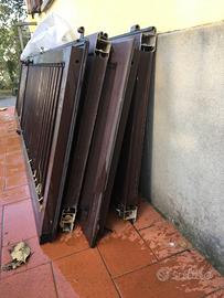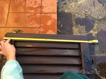 2 coppie di persiane (doppia anta ciascuna coppia) marroni in alluminio (per portafinestra) con lamelle regolabili da rotelle interne.