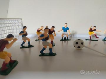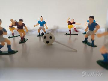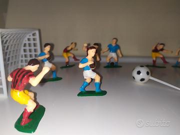 Vendo n. 12 personaggi decorativi per torta a forma di campo sportivo. Le maglie rappresentano due squadre diverse. Adatti per alimenti. Il set è dotato di pallone da inserire nel dolce e di due porte per rendere il tutto più bello e realistico.