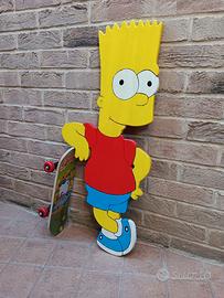 Vendo piccola installazione artistica come arredo casa/camera bimbi, personaggio dei cartoni animati con skateboard realizzato a mano su tavola in legno di Paulownia dipinto con colori ad acqua. Misure h 88 x L 40 cm