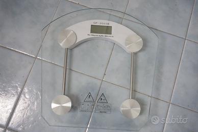 Bilancia pesapersone digitale TeKone 2003B - in vetro temperato - a batteria - (Nuova) Oggetto con doppia funzione: quella principale di bilancia pesapersone e quella di termometro per misurare la temperatura dell'ambiente in cui viene collocata. Caratteristiche: Bilancia pesapersone in vetro temperato. Massima precisione dispone di 4 sensori che garantiscono una misurazione molto precisa e affidabile. Portata massima: 180kg. Sensibilità: 10g Alimentazione a batteria. Dispone di display LCD. Dimensioni: 33cm x 33cm Oggetto di linea moderna, trasparente, che si inserisce bene in qualsiasi stile di stanza da bagno. La bilancia è nuova, oggetto mai utilizzato. Senza scatola.