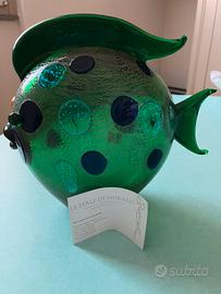 Elegante pesce in vetro di Murano misura 23x21 realizzato con tecnica tradizionale. Colori vivaci e ben definiti. Ideale come elemento d’arredo o da collezione