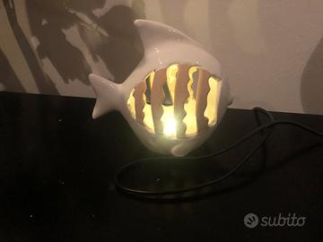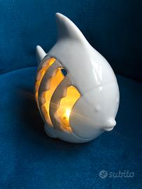Pesce marino in ceramica bianca con striature color sabbia . Dimensioni 16x9x14 cm