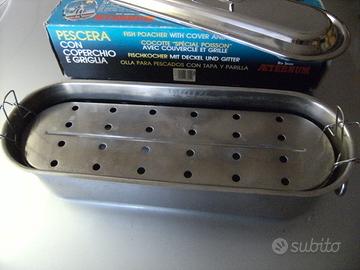 Pescera Aeternum in acciaio inossidabile completa di coperchio, griglia di sollevato e scatola in cartone, in condizioni ottime, utilizzata solo due volte, dimensioni 50x15 cm. altezza 12 cm.