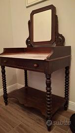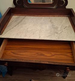 Antica petineus in legno con piano in marmo e cassetto estraibile