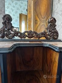Regalo elegante petineuse dei primi del 900 in radica di noce, completa di specchio e due sportelli laterali che faceva parte della camera da letto della mia famiglia. È un mobile dal fascino retrò, ideale anche come elemento decorativo. La petineuse è usata ed ha subito un lieve danno durante il trasloco nel capannone, ma è stata di nuovo ripristinata e, presentando altrimenti normali segni del tempo, resta comunque ancora solida e completamente utilizzabile. Purtroppo non trova posto nella mia camera e la devo quindi regalare a estimatori dell'artigianato ebanistico piemontese degli anni 20. La petineuse si trova ora in un capannone nell'entroterra di Savona. Il ritiro e l'imballo è a carico dell'interessato.