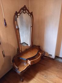 mobile d'arredo particolare e di effetto 117 cm x h 49x 40 di profondità. specchio h 130x60.anche lo specchio ha i segni di un tempo.molto raro.