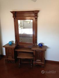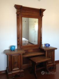 Bellissima pettiniera antica ( fine 800 inizi 900) comprensiva di sgabello larghezza cm. 137 altezza 160 peofondita’ cm. 33 , eredita’ di famiglia ! Vendo per inutilizzo ad euro 150 . Viste le dimensioni e’ preferibile consegna a mano al mio domicilio in caso contrario il trasporto e’ a cura dell’acquirente .