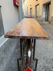 Pianale su bici in stile industriale vintage Usato 5 anni come arredamento negozio Lunghezza ingombro totale 200 cm Lungezza pianale 188cm (158cm + vasca) Altezza 93cm Profondità 38 cm
