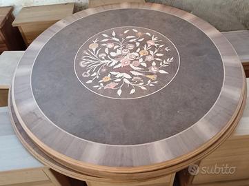Piano di tavolo intarsiato in radica di noce Daniela lavorata a spina di pesce.(10)