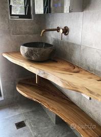 Realizziamo completamente a mano e su ordinazione, Piani Lavabo , stile live Edge e non, cedro del libano, ulivo, pioppo nero e molte altre essenze,. a muro o con gambe in ferro o legno a seconda di come lo si sceglie.