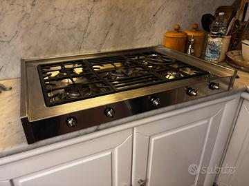 Vendo piano cottura a gas Smeg da incasso, 5 fuochi con bruciatore centrale, struttura in acciaio inox e griglie in ghisa.