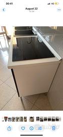 Piano cottura SMEG a induzione, di colore nero e lavello a due vasche di colore nero con mobile sottostante con ante nere lucide. Misure: 180x 60 x90