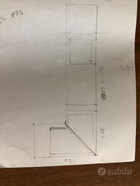 Piano cucina in marmo completo di rivestimento colore bianco lucido, faceva parte della cucina febal in foto ma causa trasloco ho dovuto sostituirlo per misure non adatte, la misura reale e’ nel disegno, predisposizione per lavello angolare e cucina da 90cm.