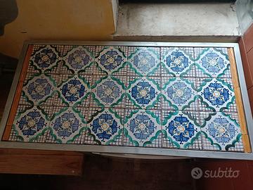 piano in ferro battuto con ruote e ceramica tutto artigianale adatto per barbecue