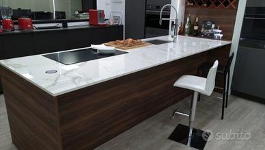 Prezzo originario €4.148,00, sconto 30%, prezzo finale €2.904,00 Piano in Dekton finitura Natura, lucido, sp. 2 cm. Fori predisposti per torretta, lavello, piano cottura, miscelatore. Presenza di piccoli graffi di superficie. Offerta di outlet per rinnovo showroom. Nel prezzo è incluso il piano top, non sono inclusi i mobili cucina sottostanti, gli elettrodomestici e oggettistica varia.