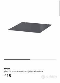 Ripiano in vetro misure 40x48, colore grigio scuro trasparente, Possibilità di inserire immagini o scritte fra il vetro e il mobile, Coordinabile alla serie Malm di Ikea, Accessori di fissaggio inclusi. Prezzo cadauno, 2 pezzi disponibili