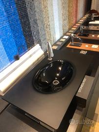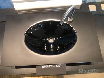 Piano lavabo nero ( piano e nero opaco , lavabo nero lucido ) monolitico in stonglass, misura 90x51 cm., spessore 2 cm. , senza rubinetto