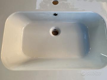 Lavabo a consolle rettificato e con installazione da incasso in ceramica bianca lucida (Mineralgloss), con foro per rubinetto e troppo pieno. Il lavabo è NUOVO nel suo imballo originale.