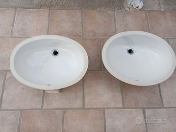 Piano x lavabo bagno in marmo "Carrara" spessore da 3 cm completo di due lavandini e con fori predisposti per rubinetti. Integro, privo di crepe o lesioni, necessita solo di una lucidata.