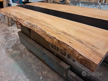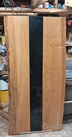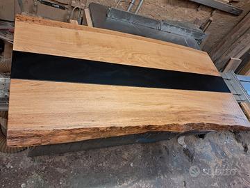 piano penisola rovere rustico,inserto in acciaio nero,verniciato a polveri . mm.1800x850/900