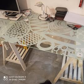 piano scrivania vetro