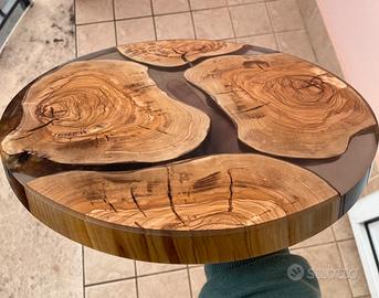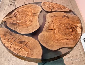 Piano tavolinl da caffè ulivo e resina