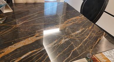 Piano tavolo. In marmo nero marquise con venature oro e bronzo. Marca bontempi.