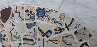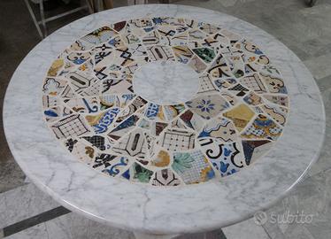 SALVE, MI CHIAMO CIRO, PROPONGO UN PIANO TAVOLO CIRCOLARE DIAMETRO CM. 95 IN MARMO BIANCO CARRARA CON SFRIDO DI RIGGIOLE NAPOLETANE DELL'800. LA COSTA DEL PIANO DEL TAVOLO E' RIFINITA CON PROFILO A TORO. OCCASIONE UNICA. IDEALE DA ESTERNO ED DA INTERNO PER ABBELLIRE LE VOSTRE DIMORE, BALCONI, TERRAZZI, B&B, HOTEL, ALBERGO, RISTORANTE, PIZZERIA, TRATTORIA. SONO A DISPOSIZIONE PER INFORMAZIONI. Il marmo di Carrara è un tipo di marmo estratto dalle cave delle Alpi Apuane in territorio di Carrara, universalmente noto come uno dei marmi più pregiati. Con questo marmo sono state realizzate alcune delle più importanti opere architettoniche e scultoree del mondo. Le riggiole (dal napoletano 'a riggiola) sono un tipo di mattonella in ceramica spesso maiolicata e decorata a mano, tipiche della zona della costa d'Amalfi.